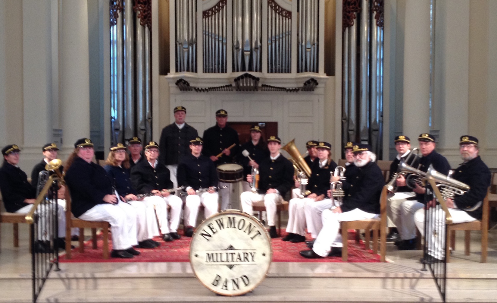 The Newmont Military Band, brought together by Larry Jones, of Windsor, Vermont, actually began as a cornet band, and was formed in 1995 as a re-creation of a small-town brass band of the late 1800s. A couple of years later, the clarinets were added. Most of the brass instruments played by the musicians in the NMB are originals, i.e., were either manufactured prior to, or based on, designs drawn before 1895. These brass instruments—cornets (not trumpets), alto horns, tenor horns, baritone, and tubas—have a more mellow sound than many of today’s brass instruments, and they require a different level of skill to produce the sound so indicative of the old-time bands.